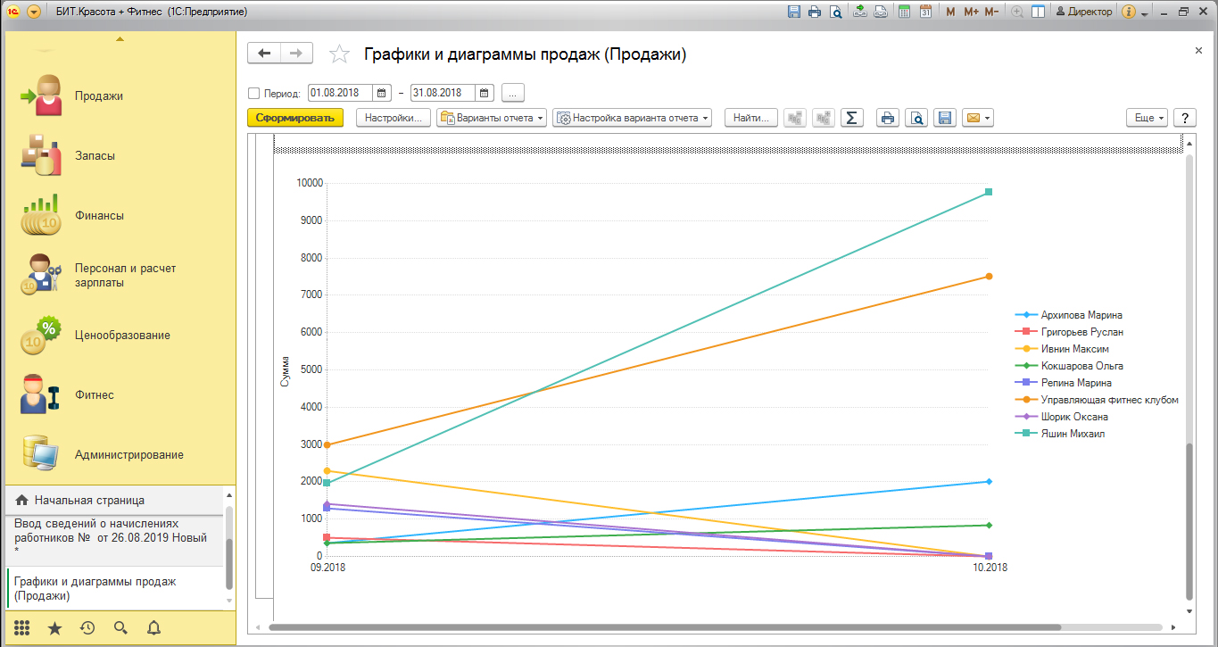 • Контролируйте, какую прибыль приносит фитнес, как меняется спрос на услуги по направлениям;