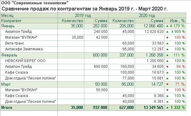 • сравнение продаж по контрагентам.