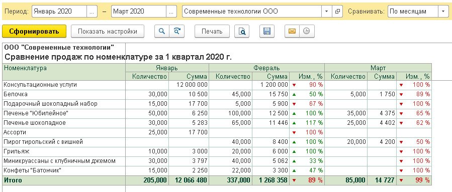 Антикризисные инструменты в «1С:Бухгалтерии 8»: анализ и сравнение продаж