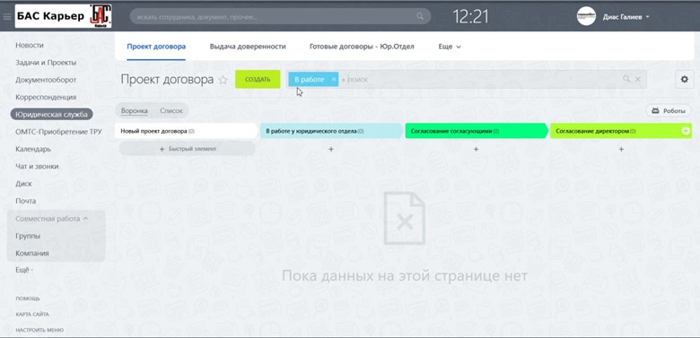 Смарт-процесс, подобный административному, специалисты Первого Бита внедрили и в юротдел.