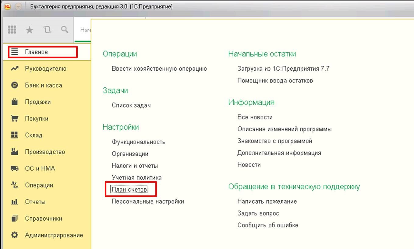 Выполним переход по гиперссылке, для чего жмем «Настройка плана счетов»: