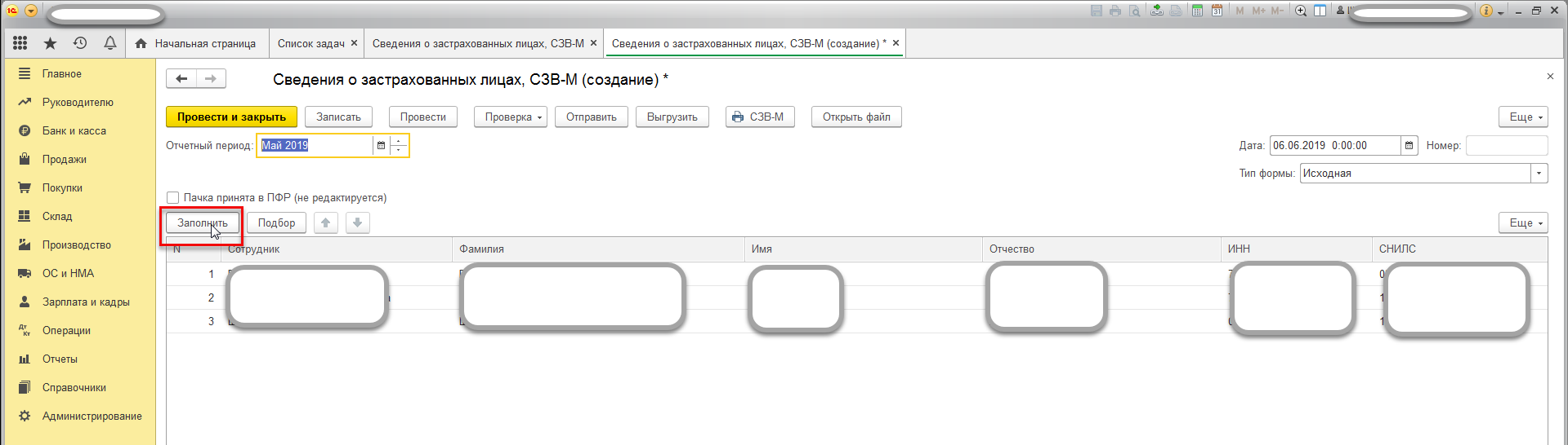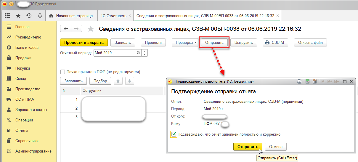 Подготовка и отправка СЗВ-М из 1С:Бухгалтерии 3.0