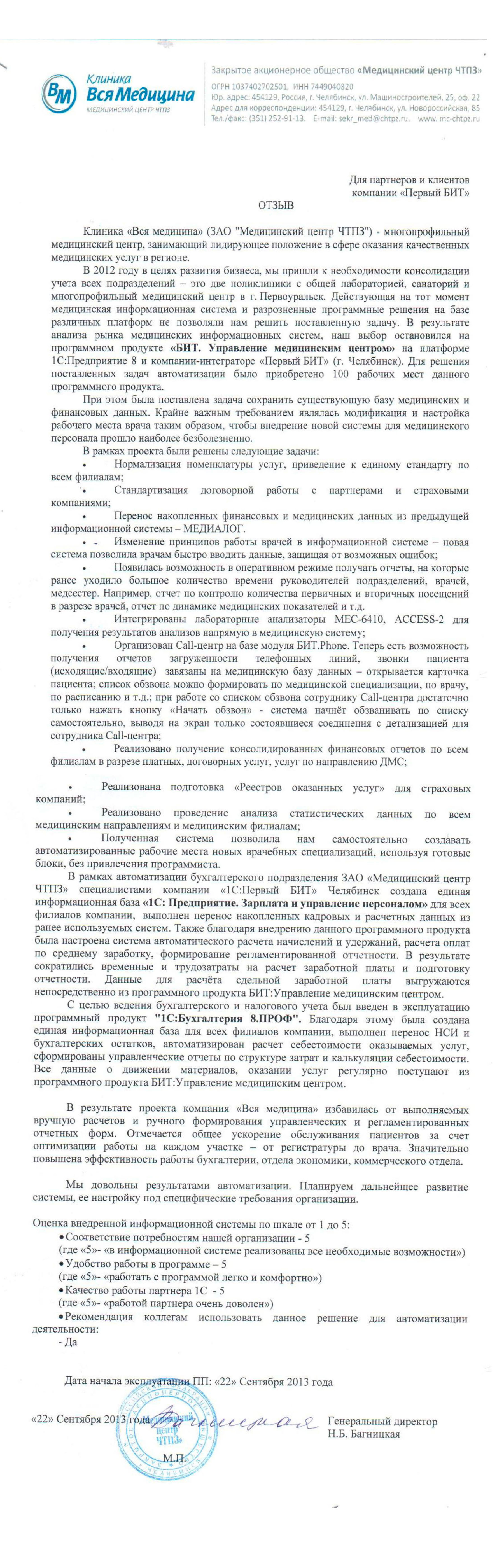 Клиент: Клиника «Вся медицина» (ЗАО «Медицинский центр ЧТПЗ»)